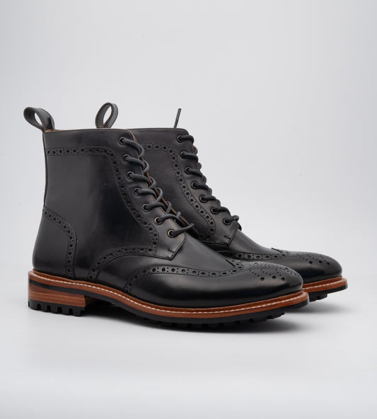 Goodyear Welted Black Full Grain Leather Moctoe Boot