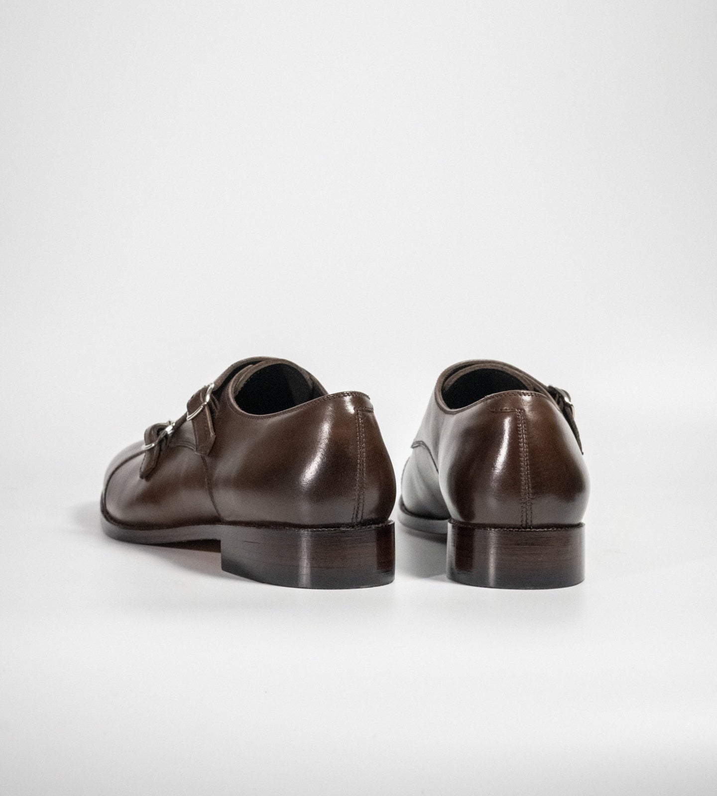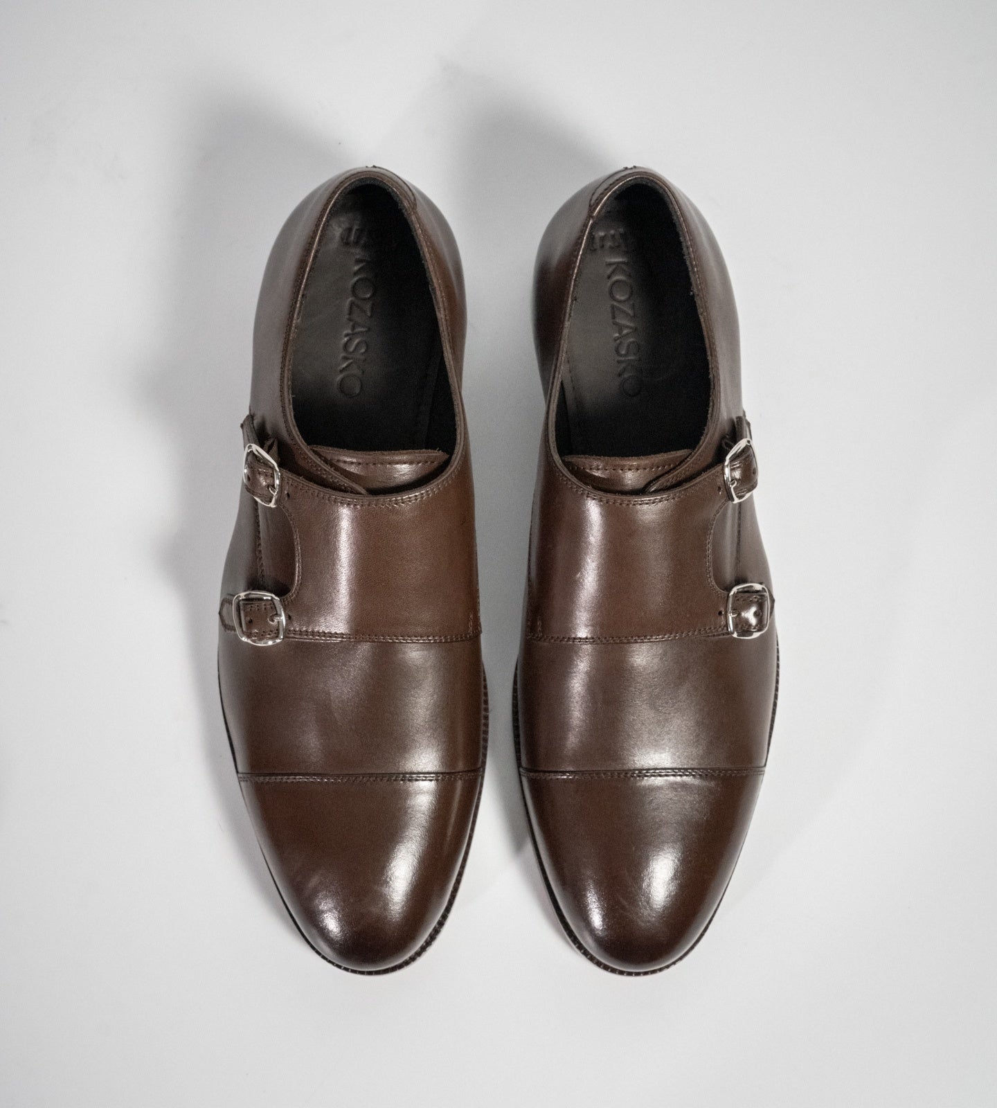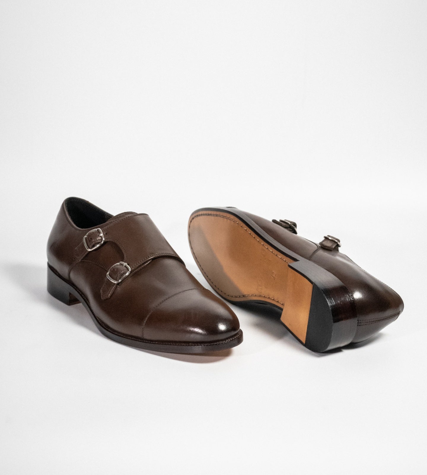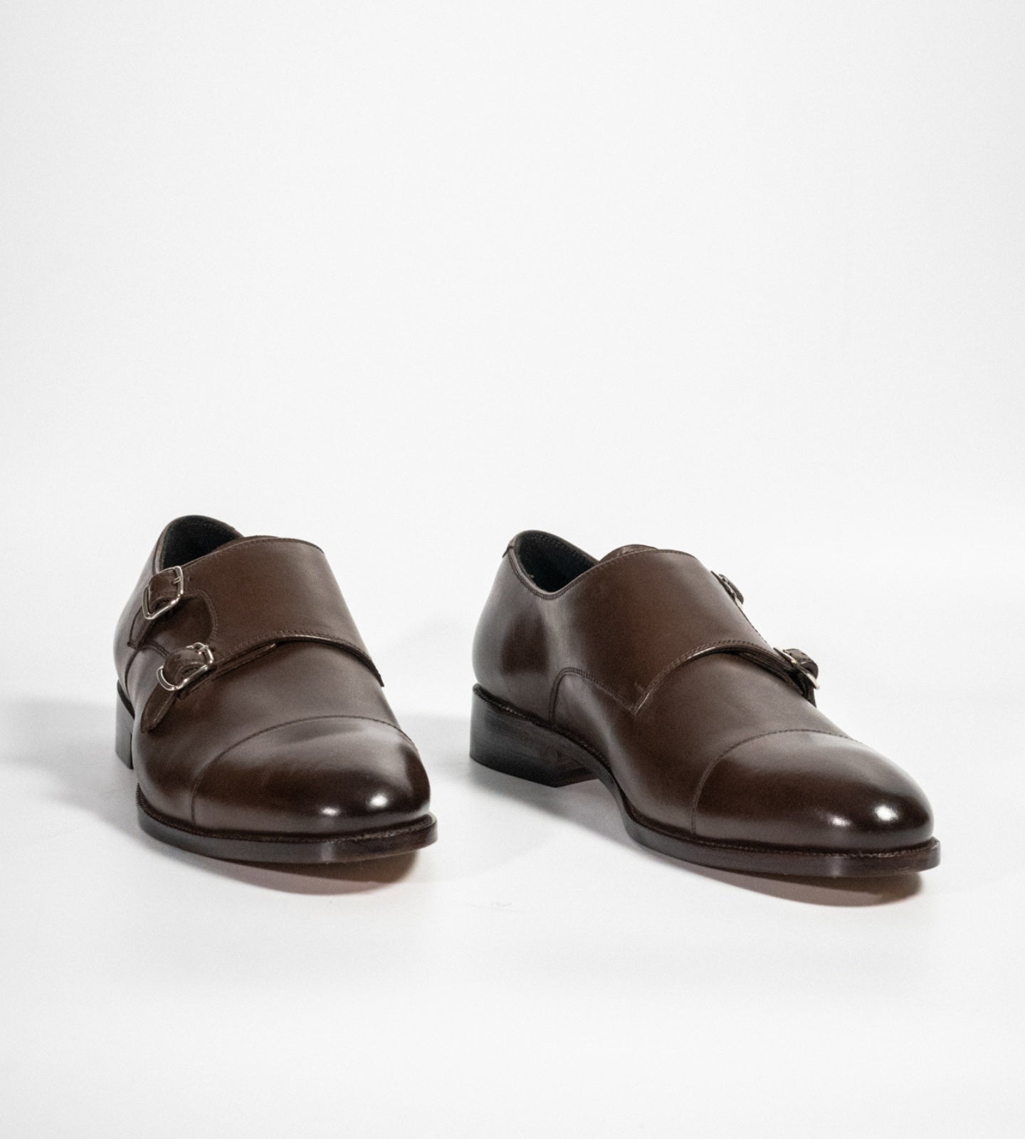 Indulge in the epitome of elegance with these handcrafted black double monk shoes. Each pair is a testament to artisanal expertise, featuring meticulous stitching and fine leather construction. The double monk strap adds a touch of contemporary flair to their classic design, ensuring they stand out in any setting. Whether paired with tailored suits or smart-casual attire, these shoes exude confidence and refinement, making them a must-have for the modern gentleman's wardrobe