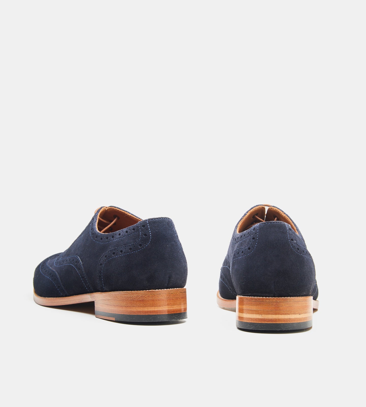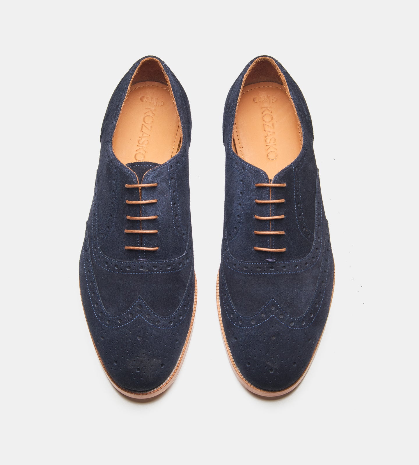The coffee brown wingtip oxfords combine classic design with artisanal craftsmanship. Featuring hand-punched broguing and the timeless wingtip style, these shoes are a true testament to elegance. Handmade using premium suede and detailed with precise Blake stitching, they deliver flexibility and durability in equal measure. The vegetable-tanned, drum-dyed leather lining enhances their luxurious feel, offering exceptional comfort. Perfectly blending sophistication and craft, these oxfords are a must-have for anyone seeking refined footwear.