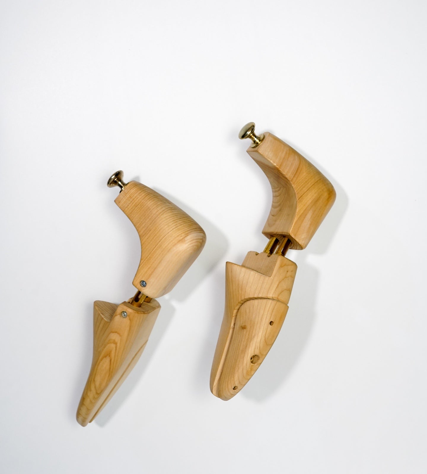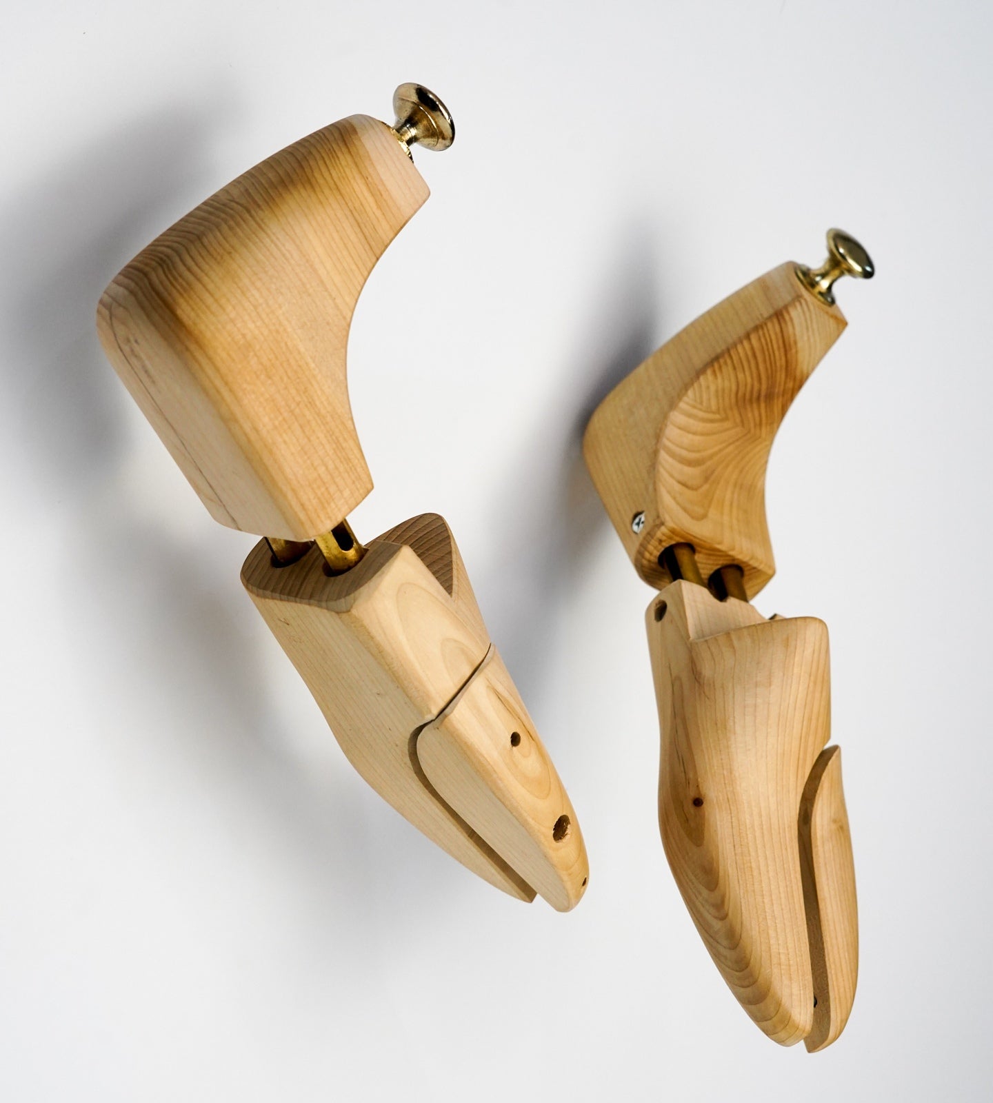 The boot shoe tree is crafted from premium cedar wood with pure brass knobs, stainless steel screws, and durable springs. These materials ensure durability, easy adjustments, and effective performance for preserving your boots and shoes.