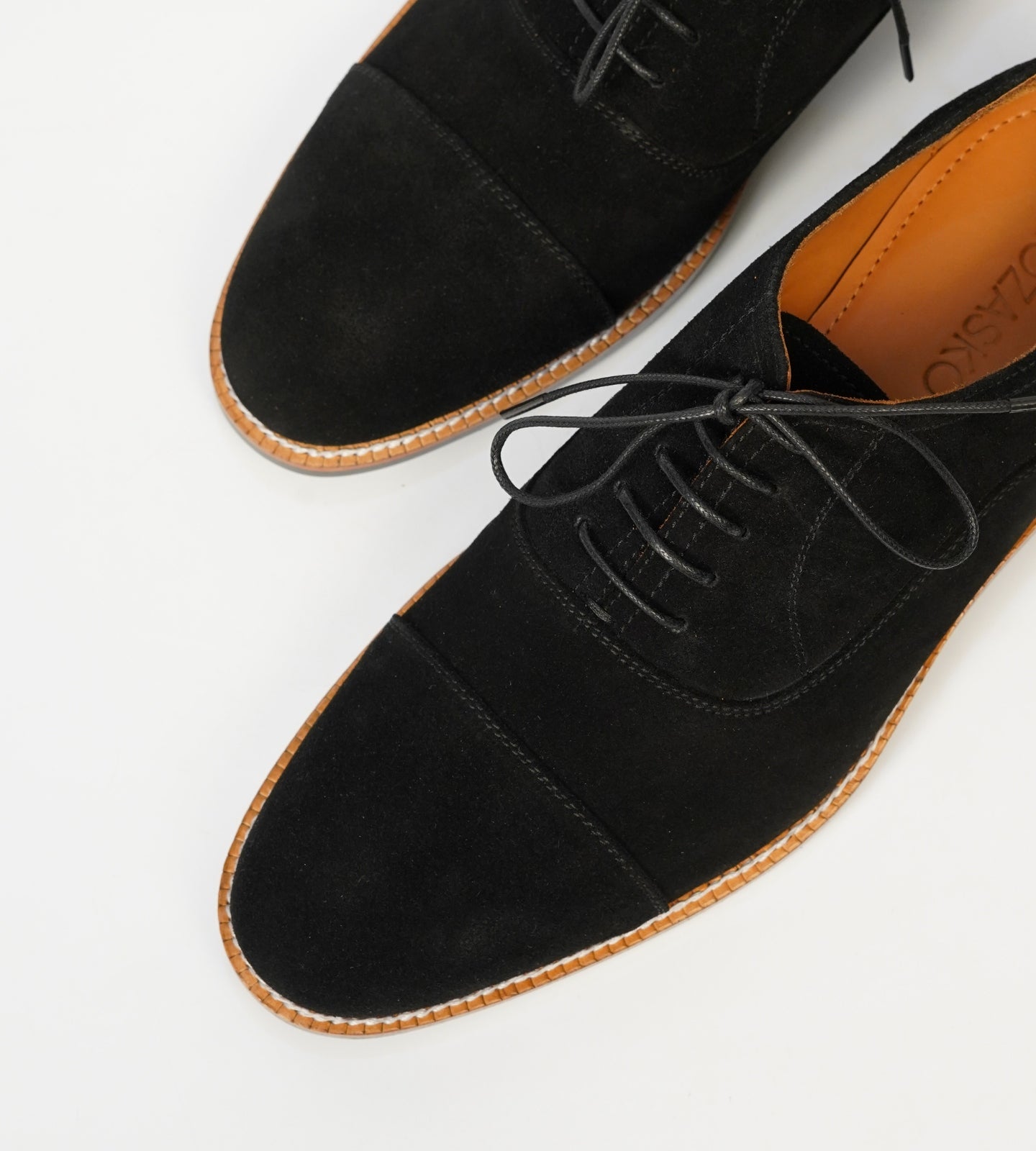 Crafted for those who appreciate understated elegance, our Premium Black Suede Captoe Oxfords blend sophistication with versatility.