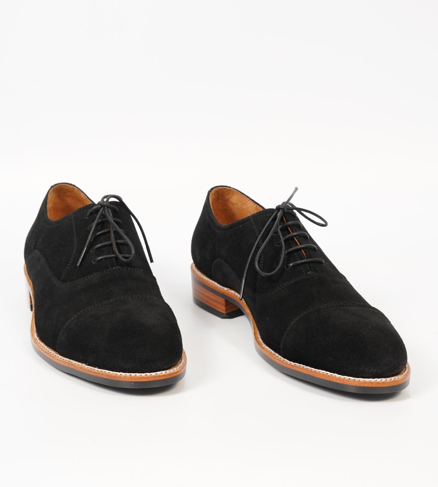 Classic Goodyear Welted Black Suede Captoe Oxfords