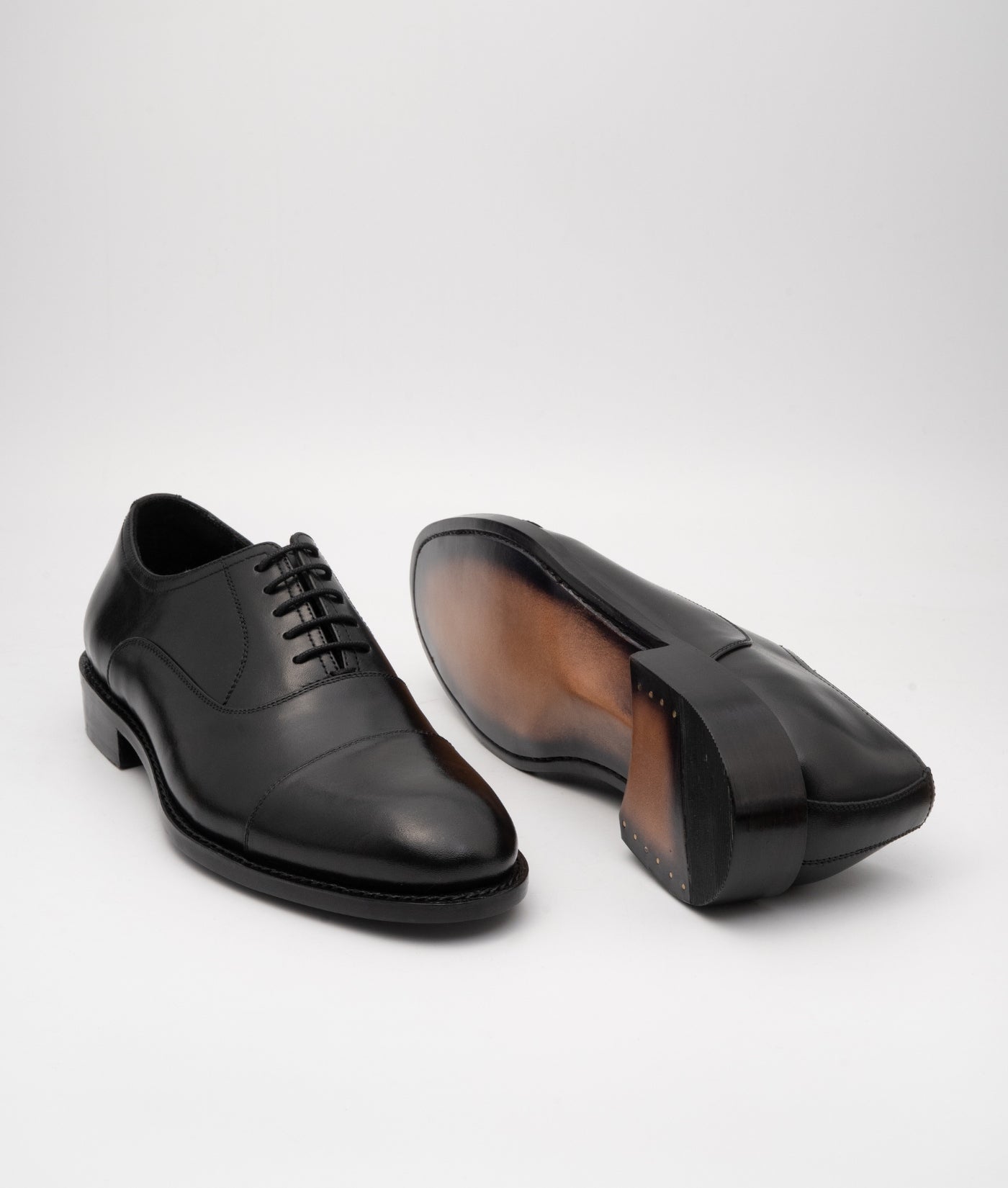 The captoe design adds a touch of classic sophistication to these Oxfords, making them suitable for both formal and business attire. The elegant, timeless look of the captoe enhances the overall aesthetic of the shoe, providing a refined appearance.