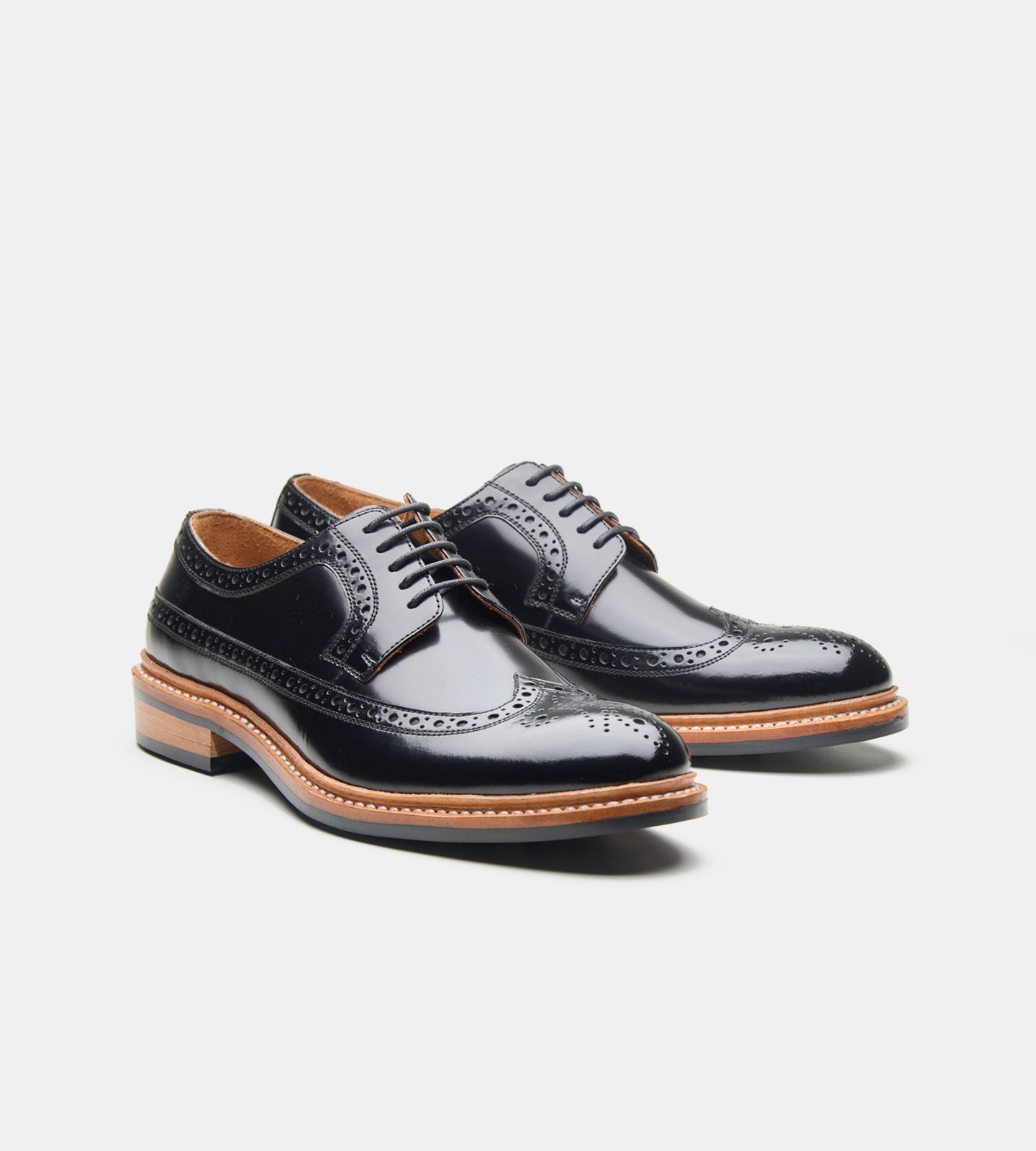 A must-have for any wardrobe, the longwing blucher combines timeless craftsmanship with modern functionality. Made from premium brush-off leather sourced from the gold-rated Sadesa tannery, its unique finish offers a glossy, polished look that develops a distinctive patina over time. The round-toe design ensures a comfortable fit with added room for ease during extended wear.