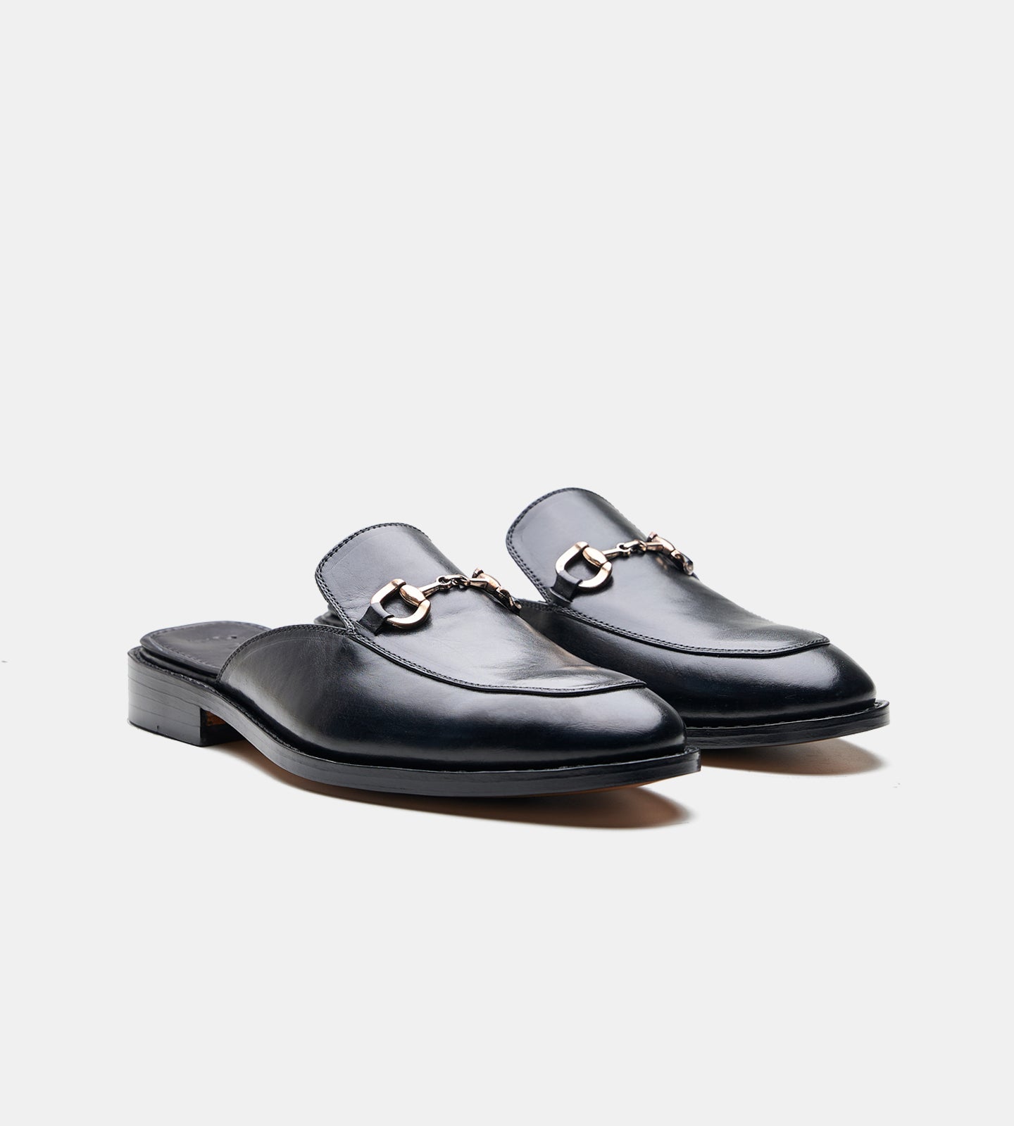 Goodyear Welted Black Full Grain Horse Bit Mules