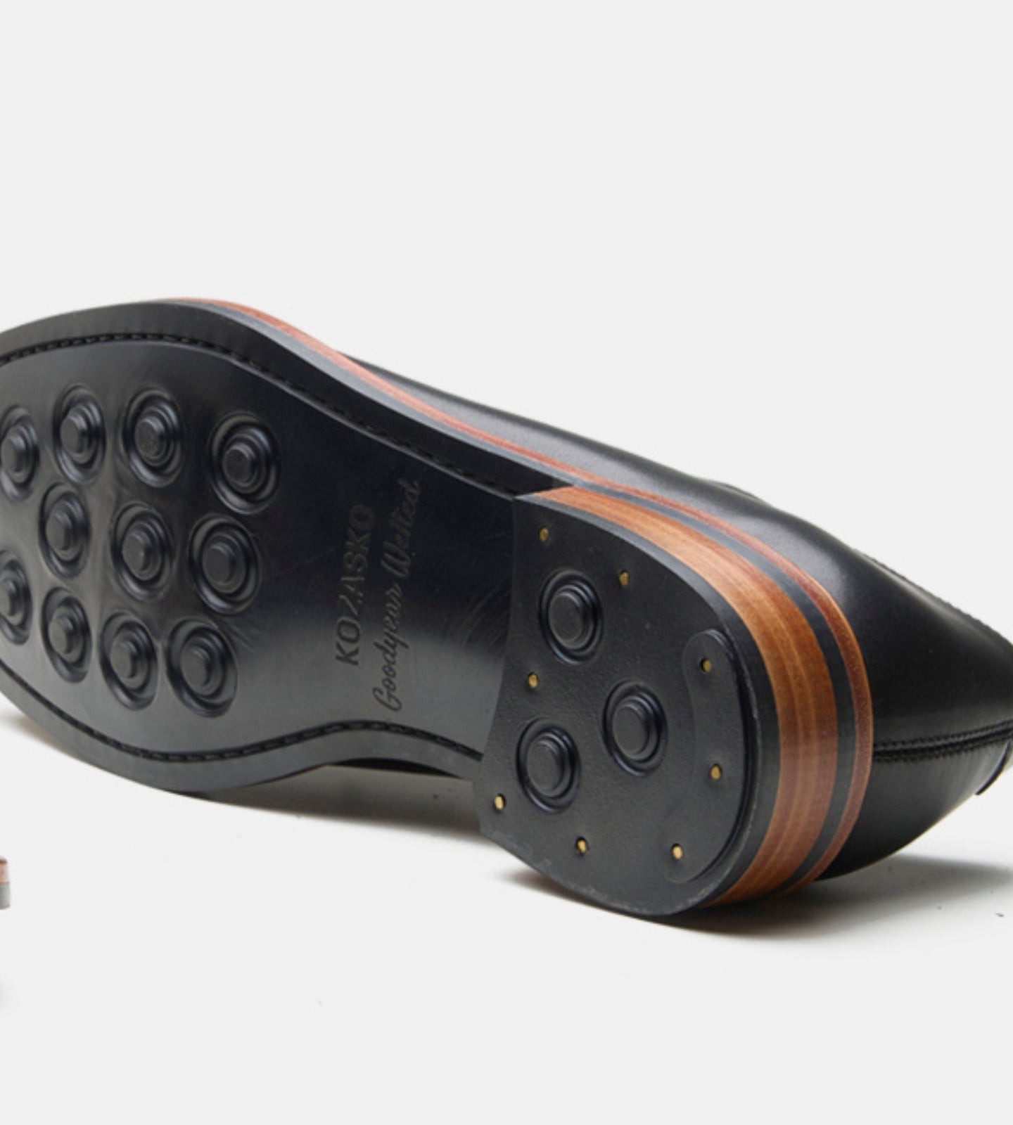 What kind of sole is used in Kozasko's longwing Blucher shoes?