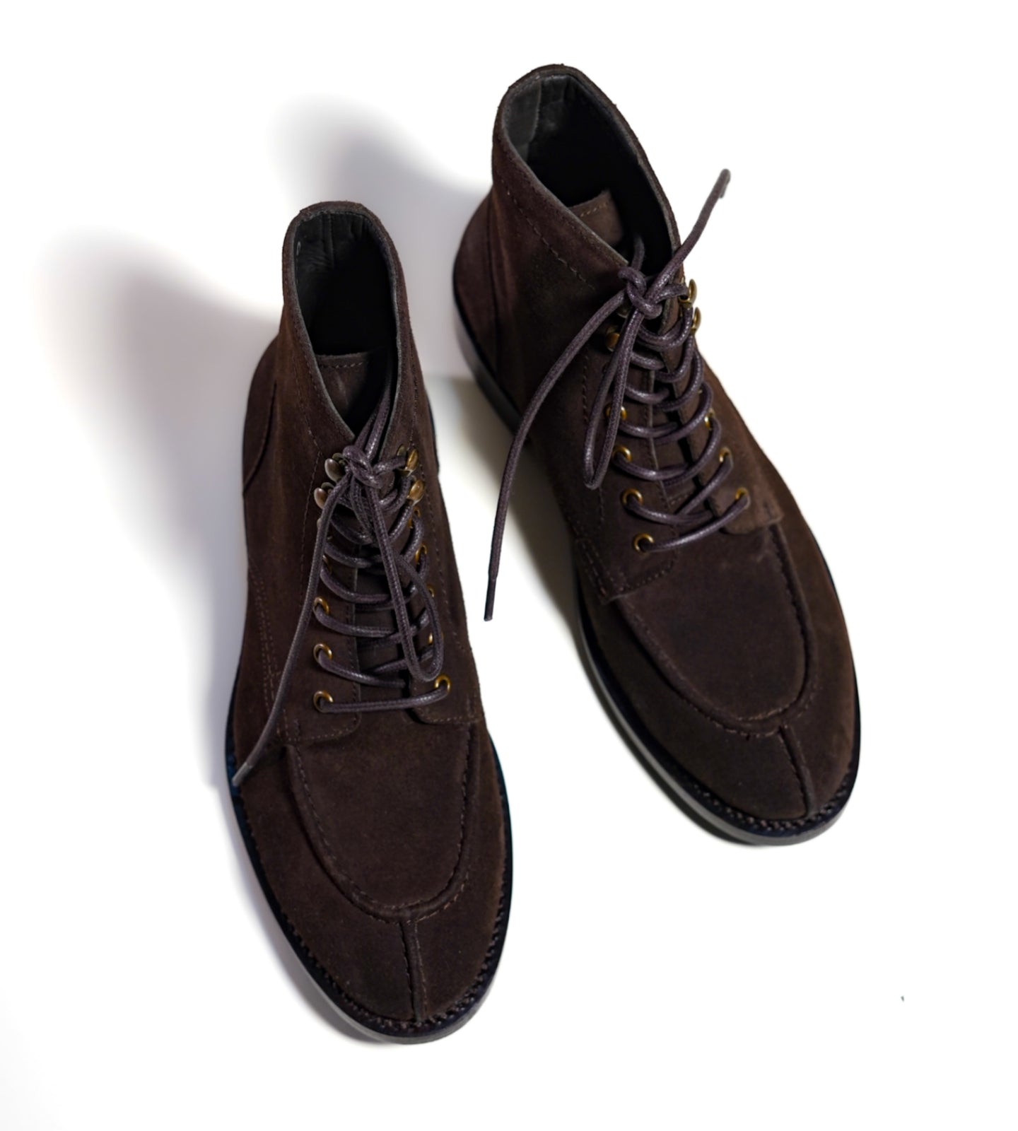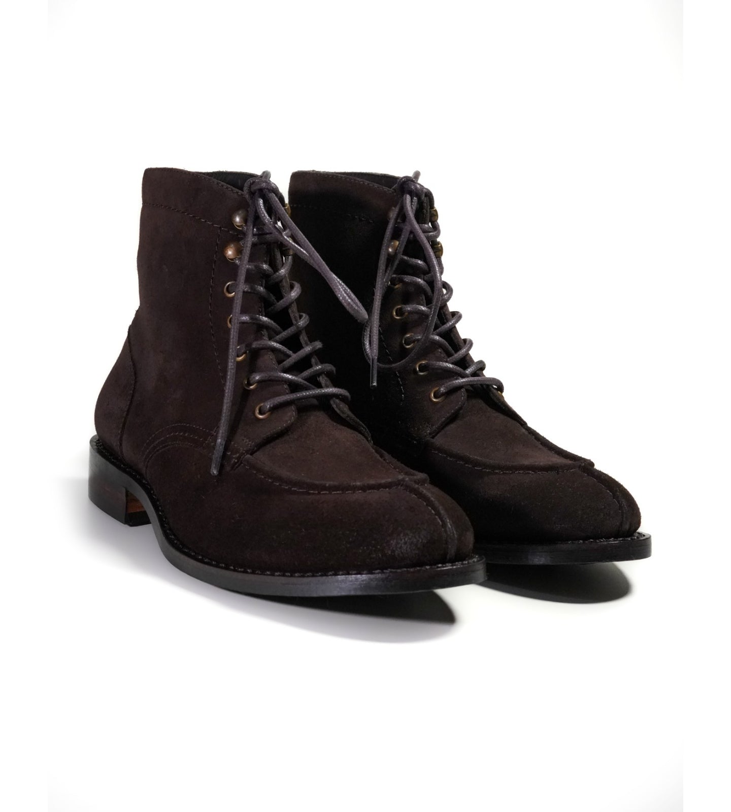 Discover timeless sophistication with our Split Toe Derby Boot, crafted from premium suede for a refined, elegant look. Featuring a matching suede-colored welt that amplifies its classic charm, this boot is designed with a unique apron seam and D-eyelets for a tailored fit. Built for durability and comfort, it includes a high-abrasion nitrile rubber sole and vegetable-tanned drum-dyed leather lining, ensuring longevity and breathability.