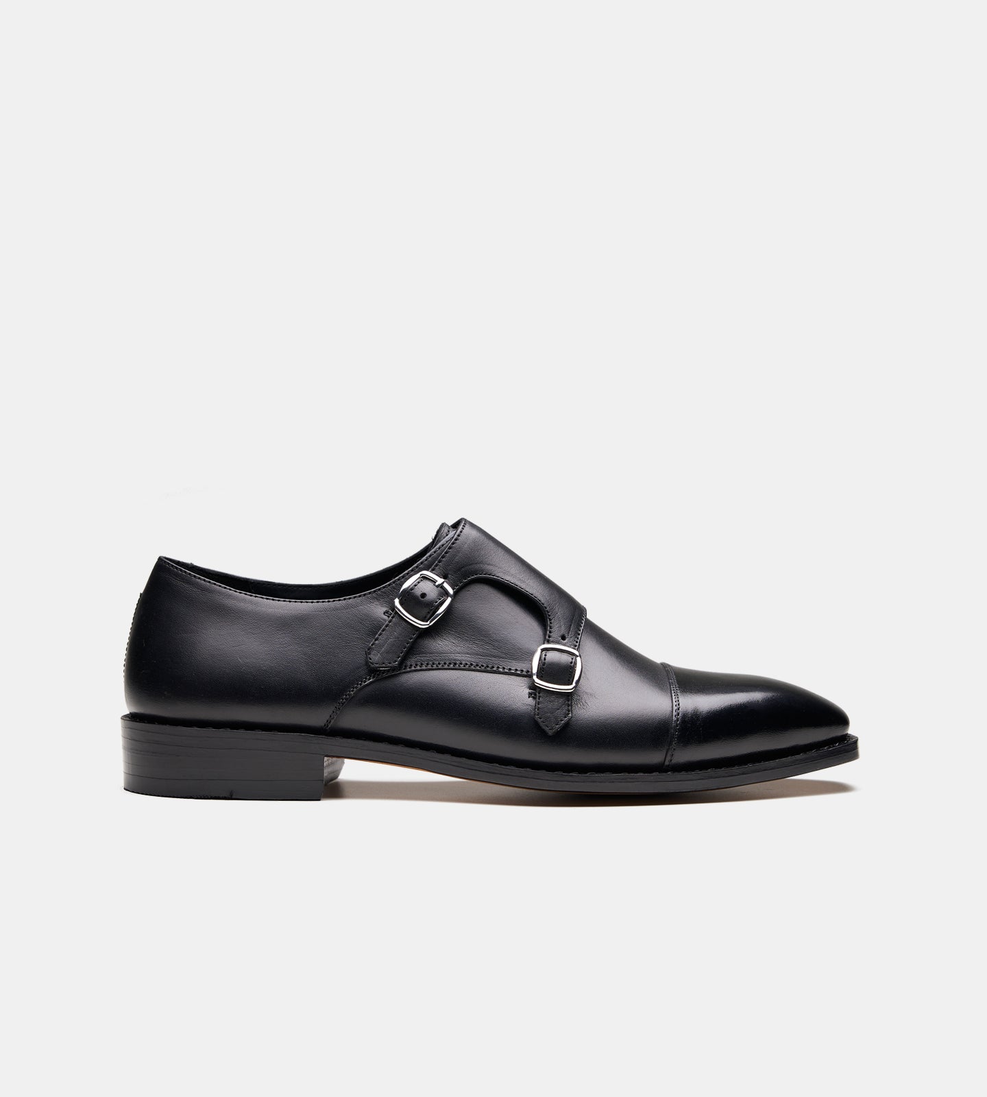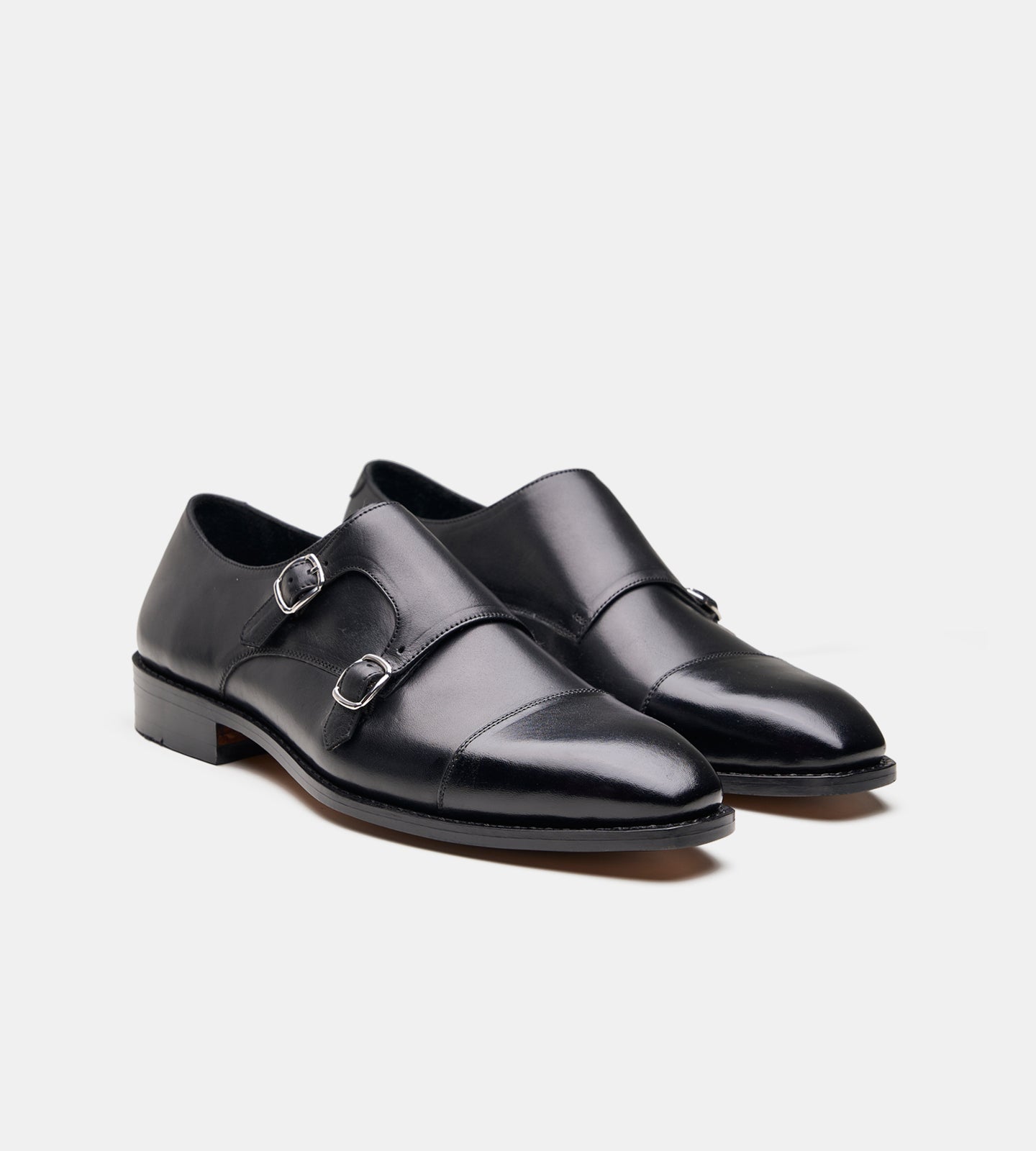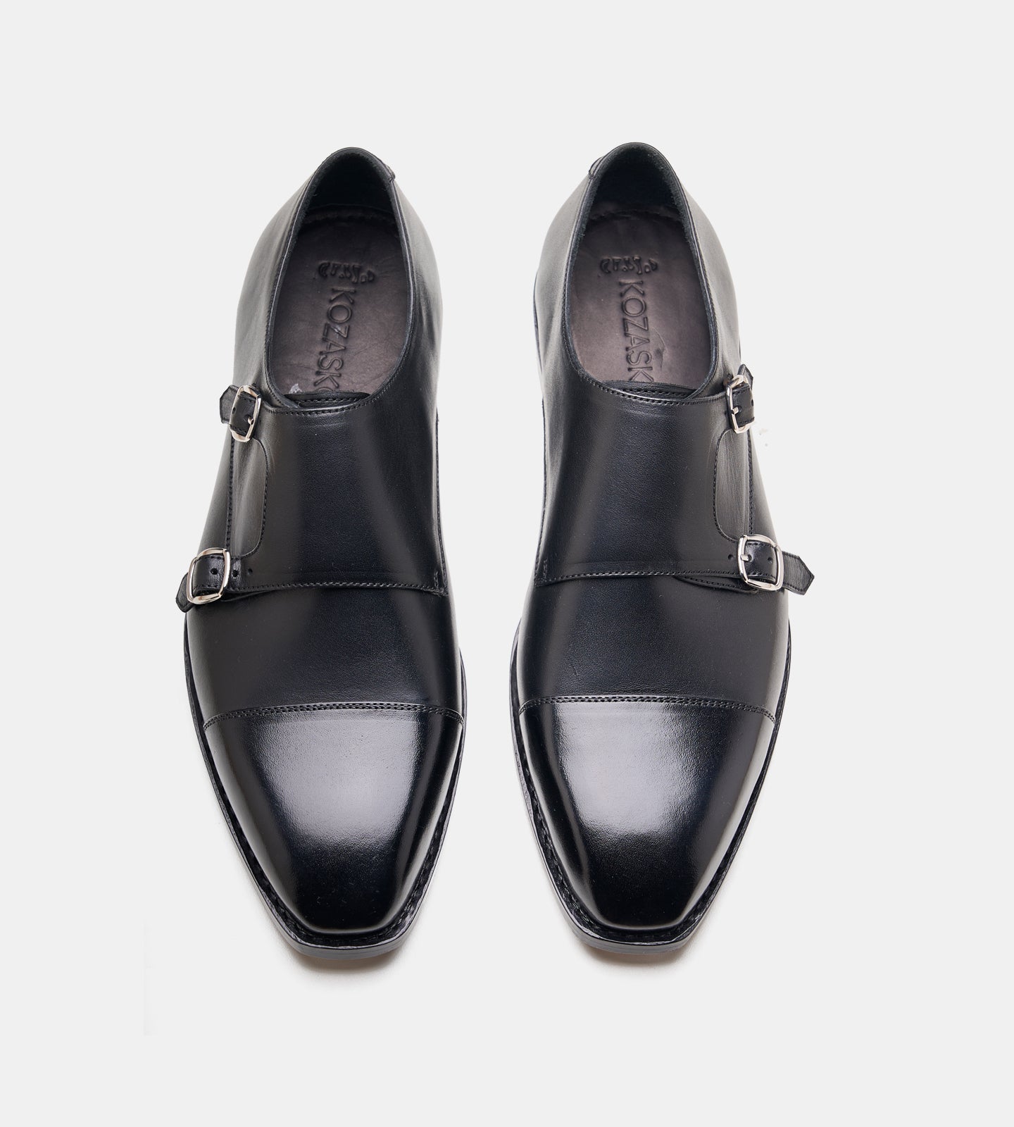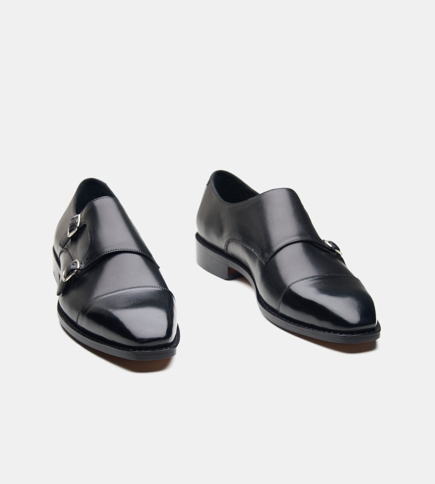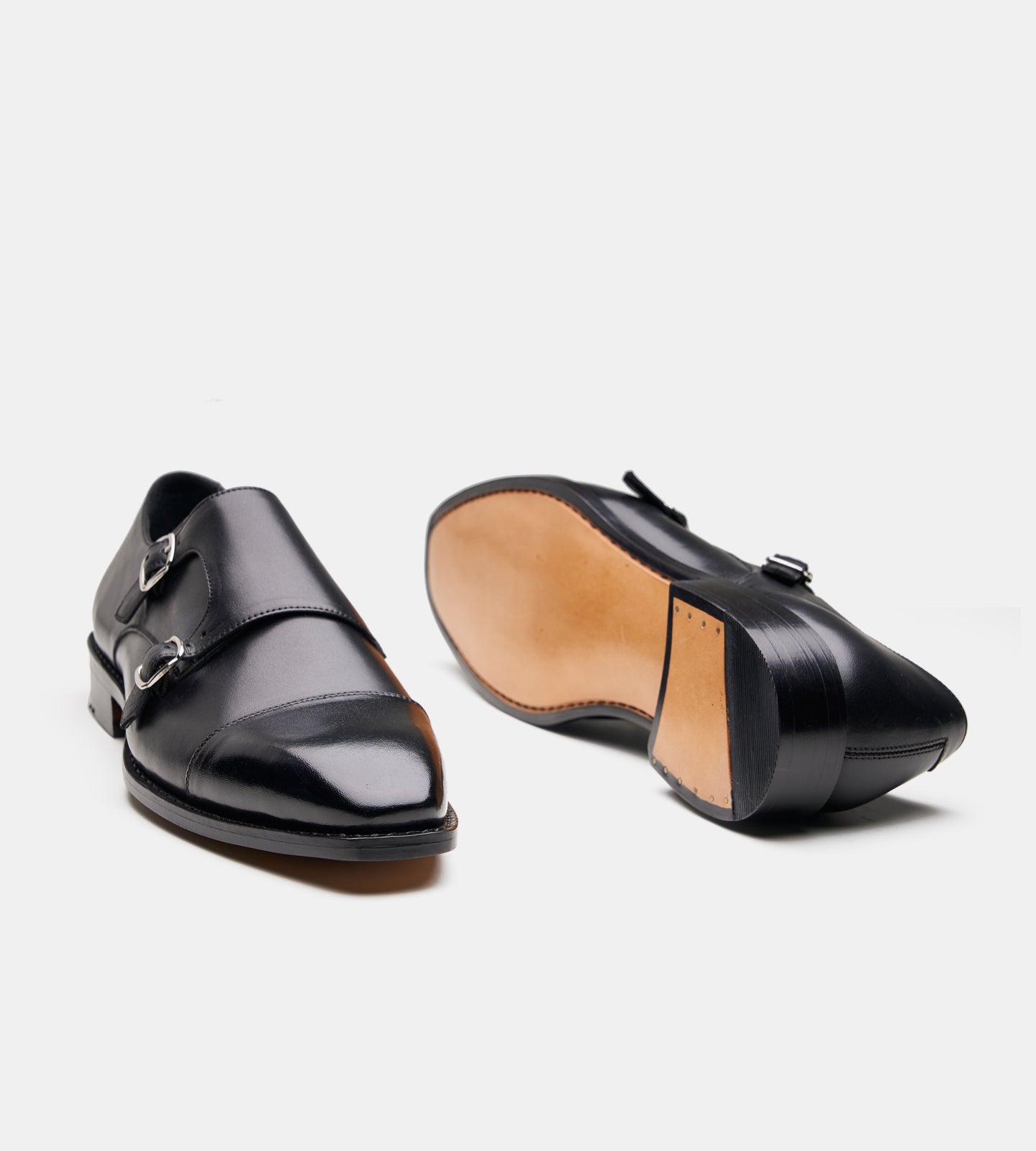 Goodyear Welted Chisel Cap Toe Black Double Strap Monk
