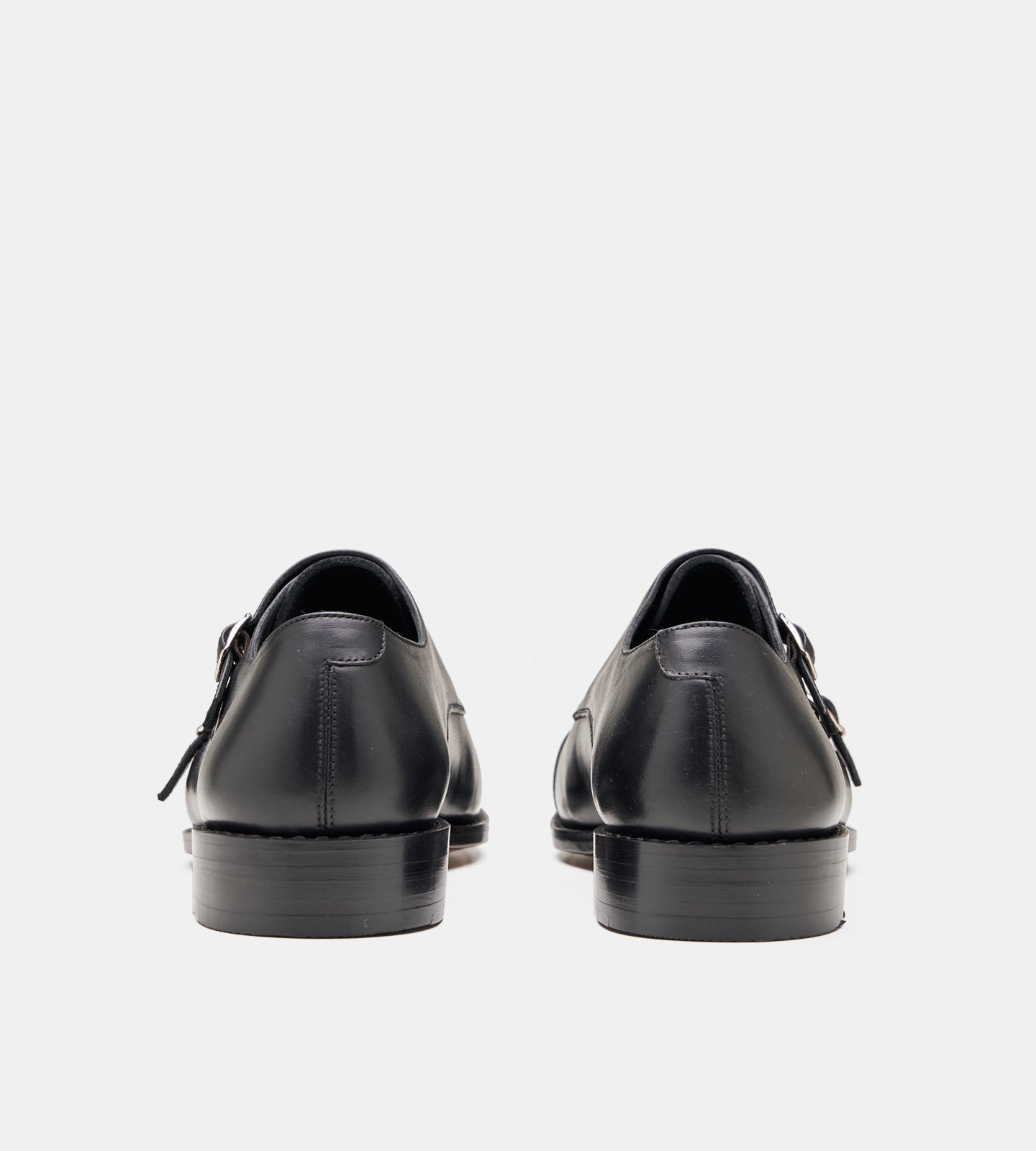 Refined and timeless, the Goodyear welted chisel toe double strap monk in black is the epitome of elegance. Crafted from premium 1.6mm full-grain leather, it develops a rich patina over time, ensuring your shoes only get better with age. The Argentinian leather soles provide durability and flexibility, while the vegetable-tanned, drum-dyed leather lining offers superior comfort. With its sleek, double buckle design, this shoe effortlessly combines classic style with modern versatility.