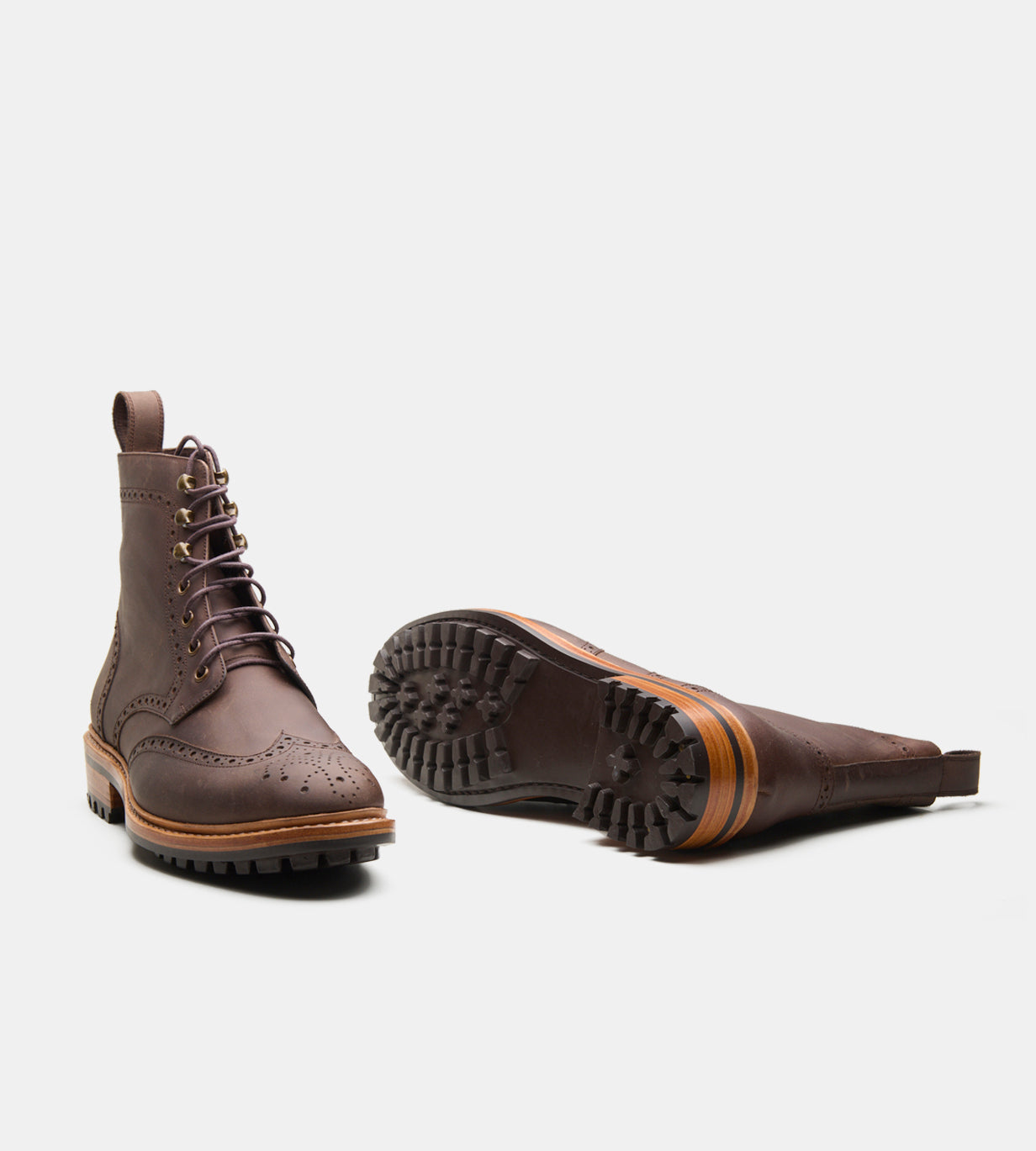 Our handwelted construction signifies superior craftsmanship, allowing the boot to mold to your foot over time for a customized fit. Enhanced by an Argentinian storm leather welt and midsole, this boot offers added water resistance and support. The combination of quality materials and meticulous workmanship makes this boot not just an accessory but an investment in lasting style and comfort. Elevate your footwear collection with our Handwelted Wingtip Derby Brogue Boot—where elegance meets durability.