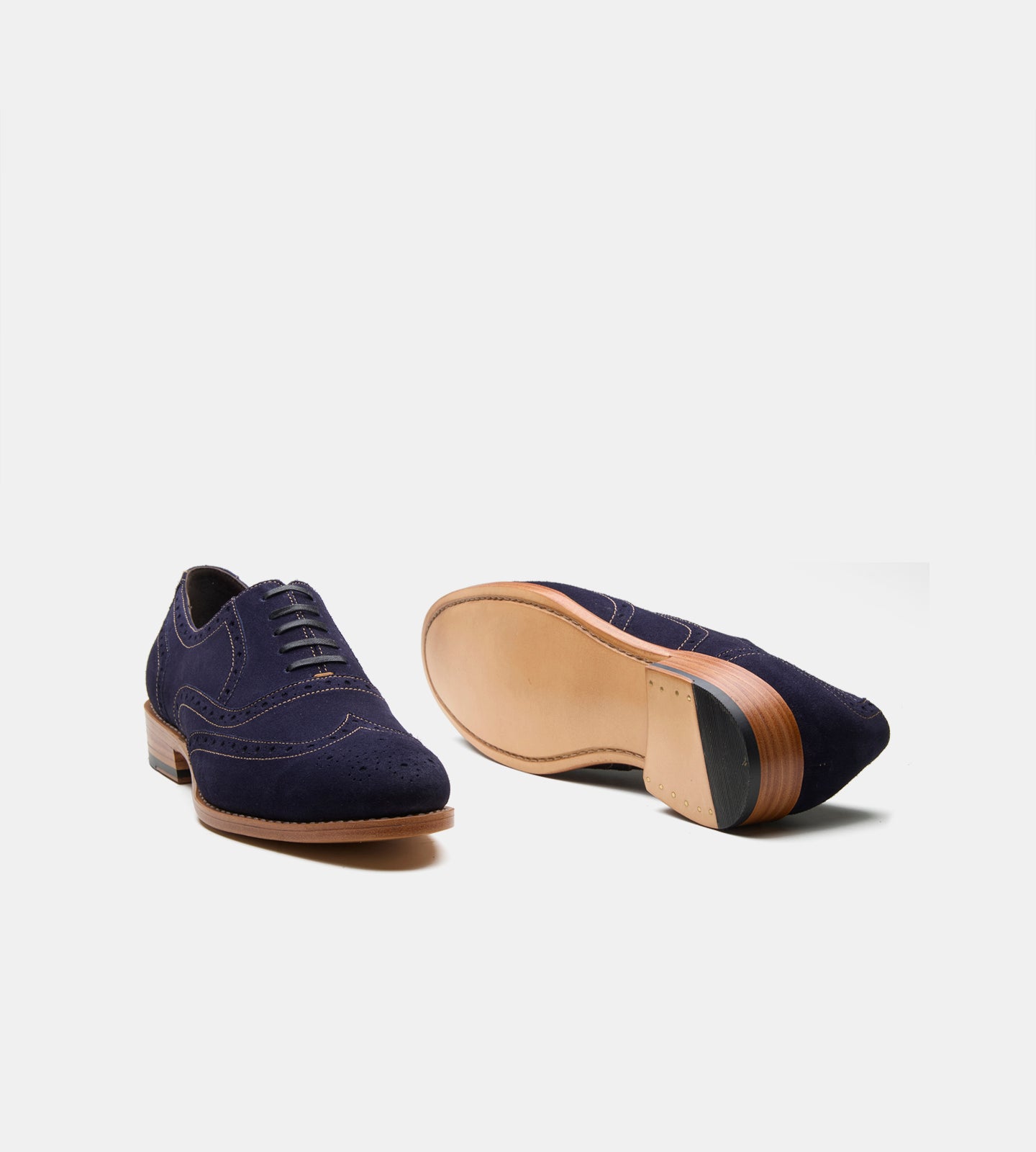 How do I care for navy suede wingtip Oxford shoes?