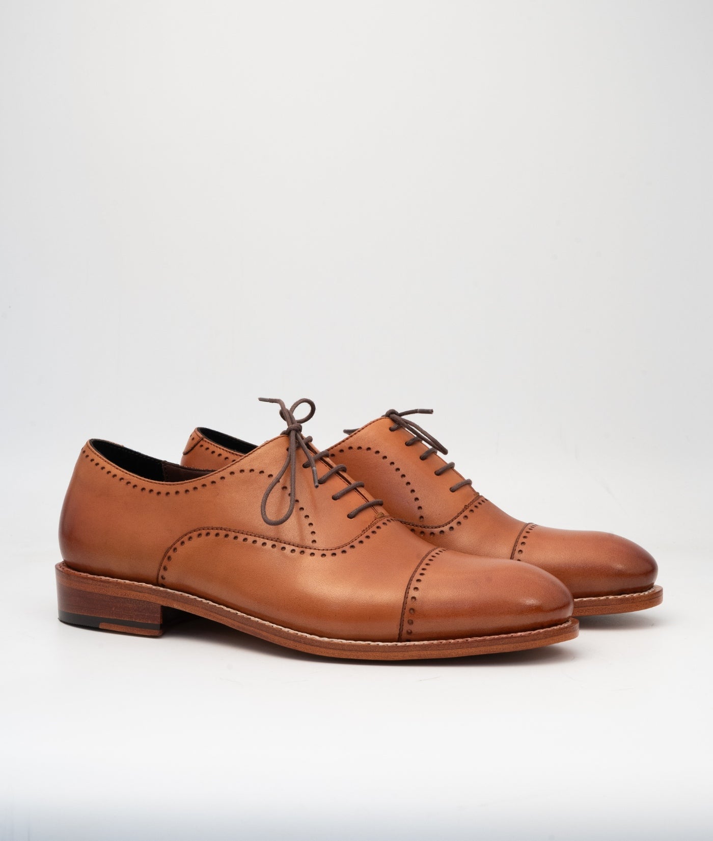 Goodyear Welted Tan Captoe Oxfords with Punches