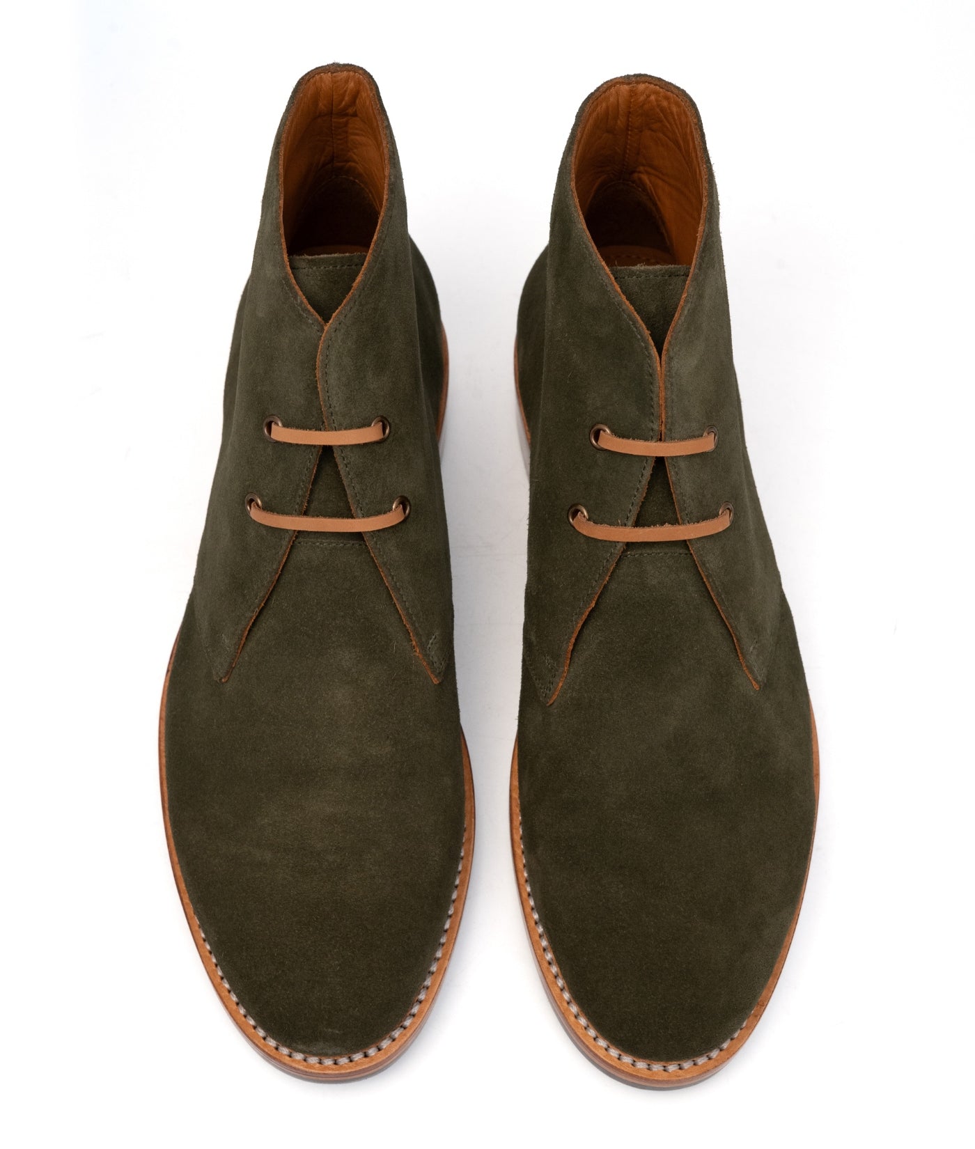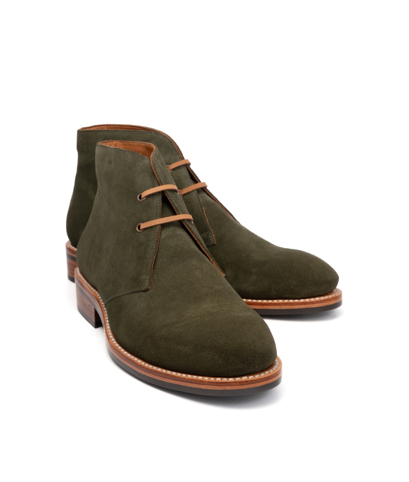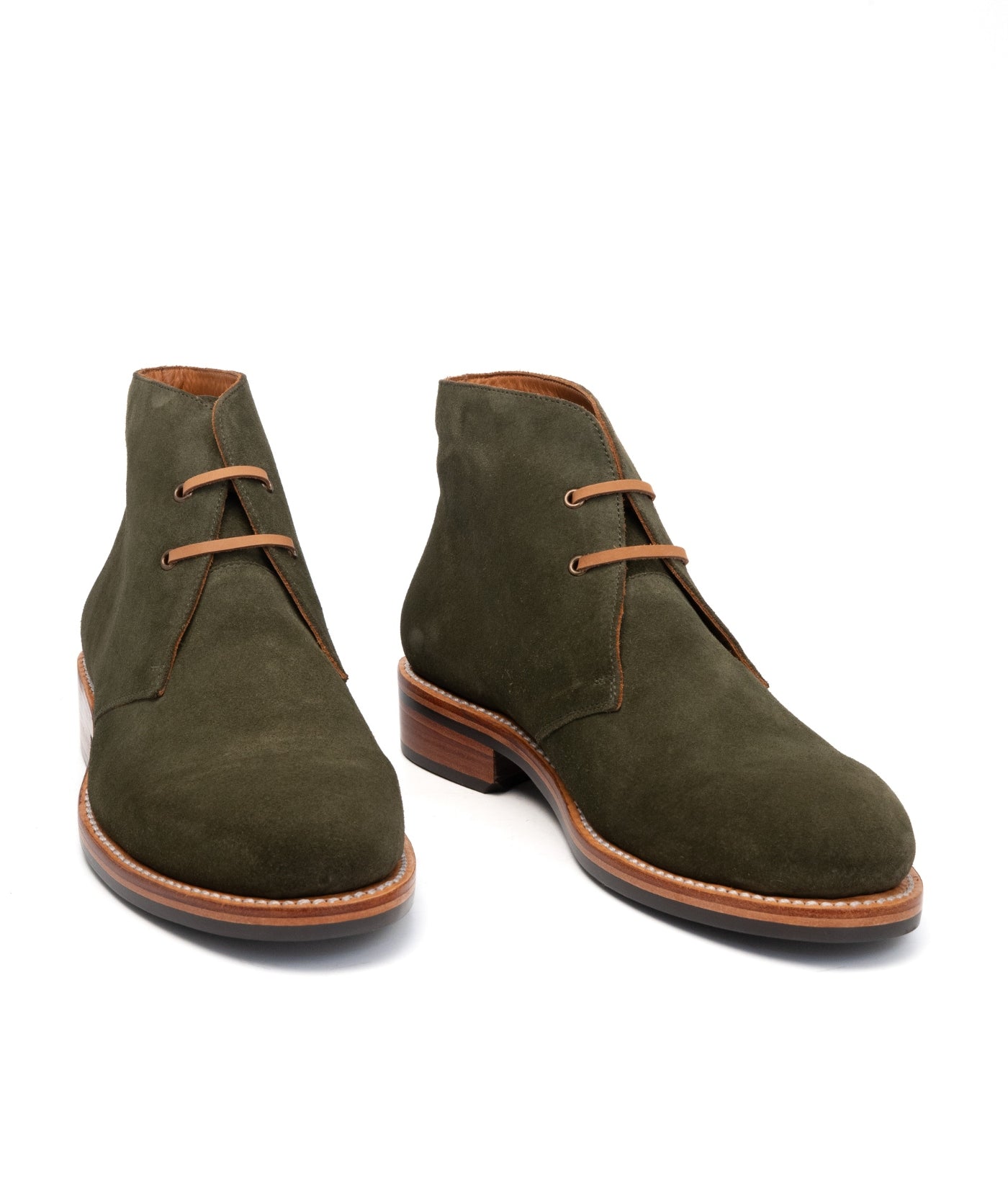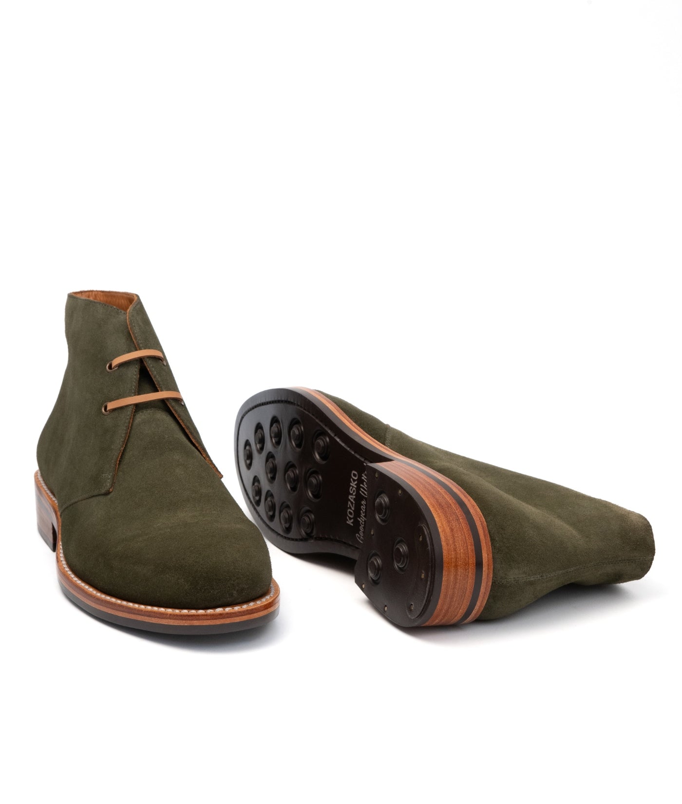 Hand-Welted Olive Suede Leather Oiled Leather Chukka Boot
