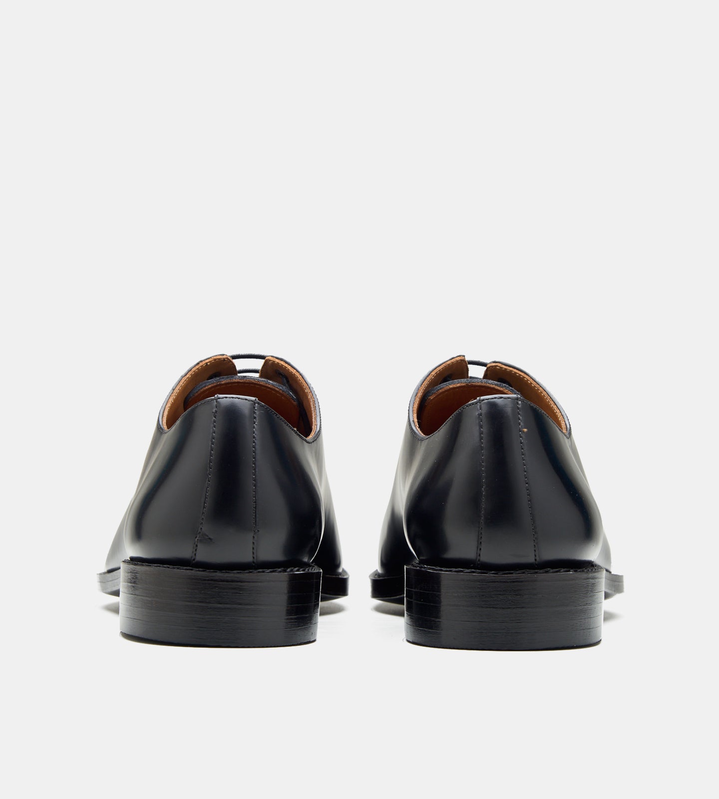 The vegetable-tanned, drum-dyed leather lining ensures both comfort and longevity. Owning a pair of seamless black oxfords is essential for elevating your wardrobe with a timeless, versatile piece that speaks to craftsmanship and understated luxury.