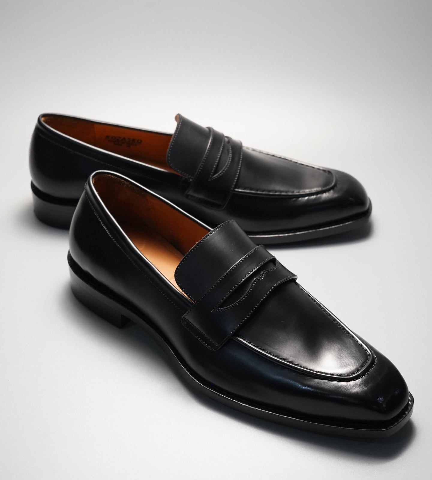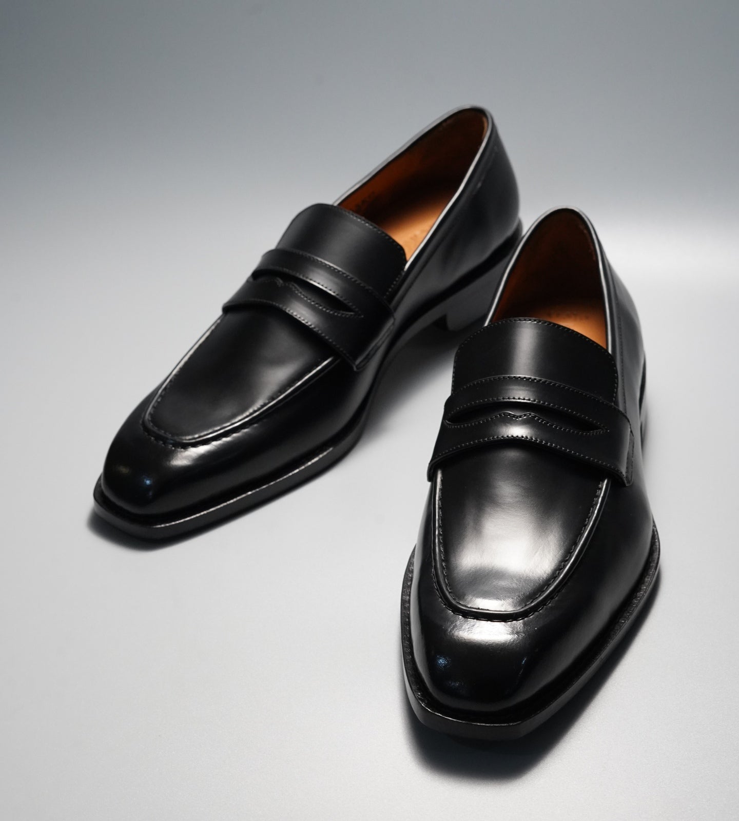 The Michigan Calf Black Penny Loafer is a timeless addition to any wardrobe. Designed in an elegant almond toe and constructed with meticulous hand-welted craftsmanship, this shoe offers both refinement and durability. The vegetable-tanned drum-dyed leather lining enhances comfort, while the Argentina leather sole and hidden channel stitching deliver a premium finish.
