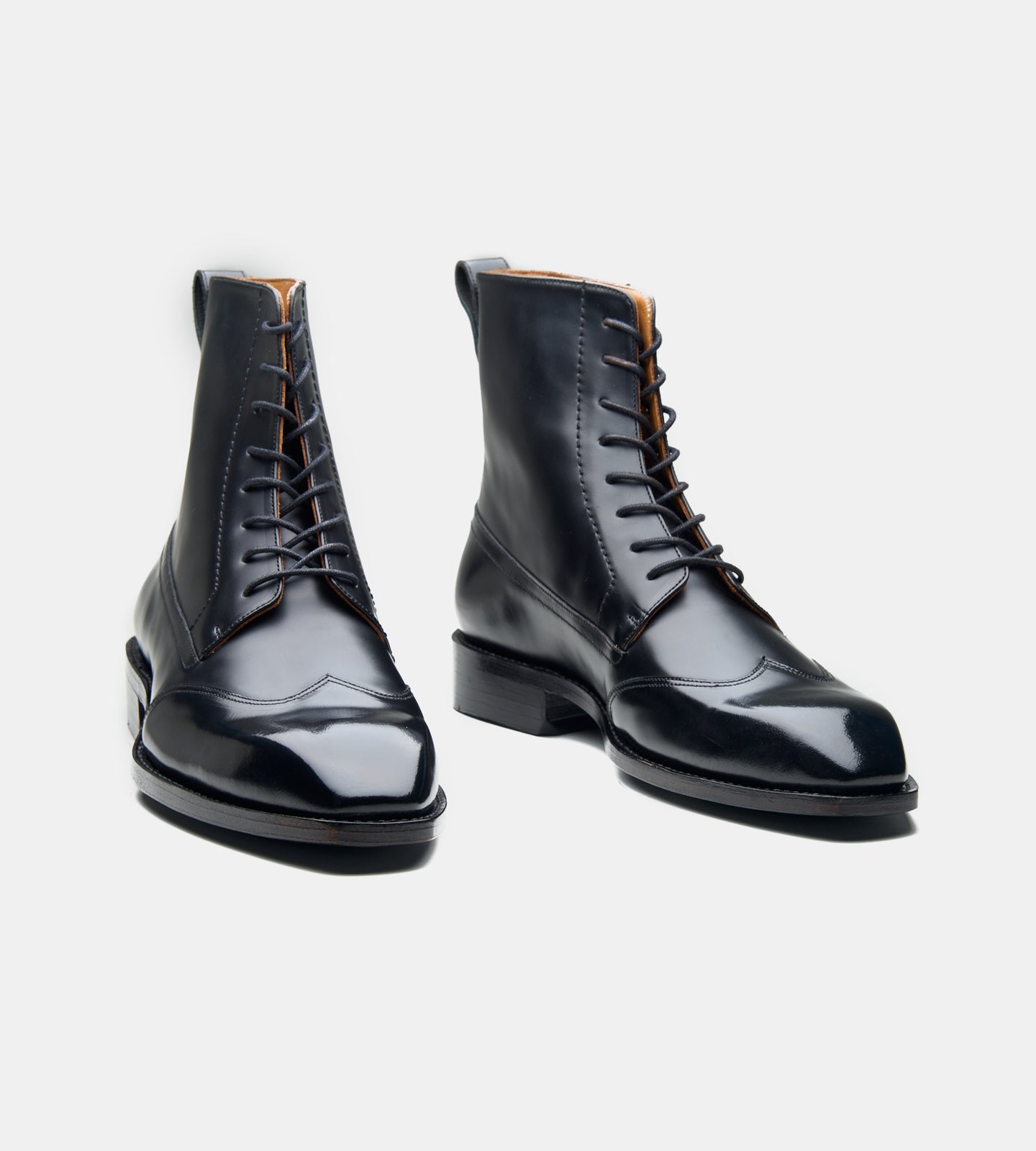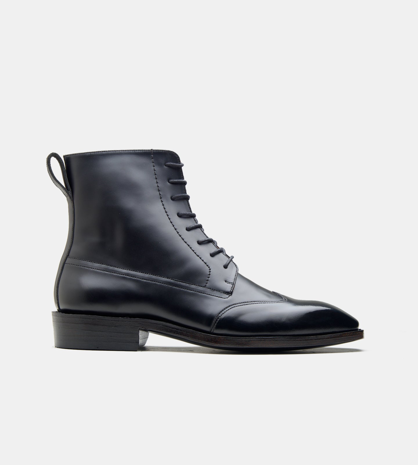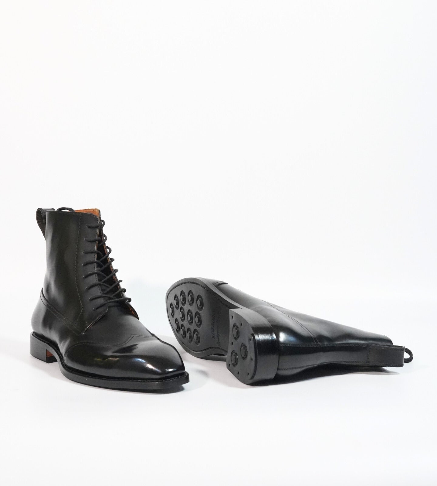 The Michigan Calf Black Dress Boots embody refined craftsmanship with a sleek chisel toe and wingtip design. Expertly handwelted, these boots feature a smooth, uninterrupted leather surface, showcasing the premium quality of the materials used. The wingtip design, a classic in dress footwear, adds a subtle yet distinguished touch, making it an essential in any well-curated wardrobe. Crafted with premium calf leather and vegetable-tanned, drum-dyed leather lining, these boots offer lasting comfort and a rich feel. Hidden channel stitching and a high-quality Argentinian leather sole enhance both durability and luxury.