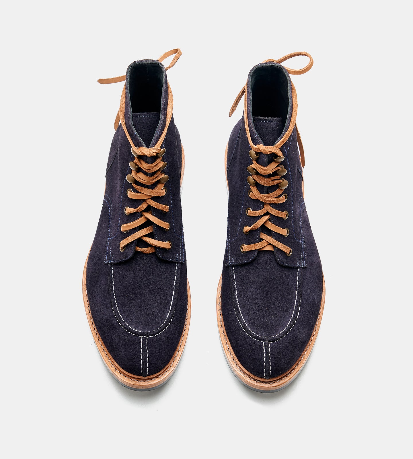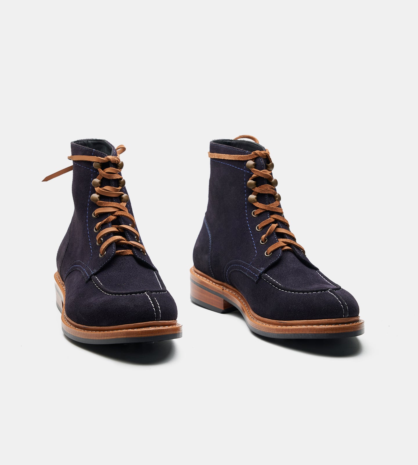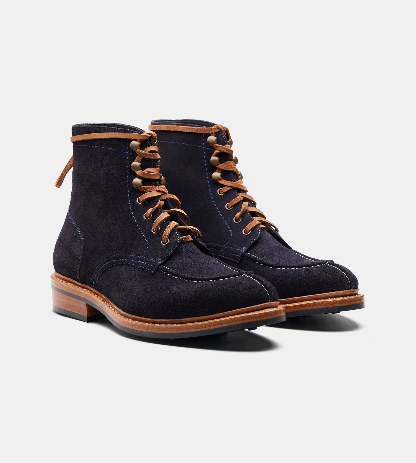 Crafted from premium navy suede, this Goodyear welted split-toe derby boot offers a sleek almond toe shape, perfect for casual outings and weekend getaways. Designed for both durability and comfort, it features a high-abrasion nitrile rubber sole and a classic storm welt made from Argentinian leather, ensuring lasting strength for years to come. The storm welt not only enhances the boot’s robust construction but also provides superior water resistance, making it an essential addition to any wardrobe.