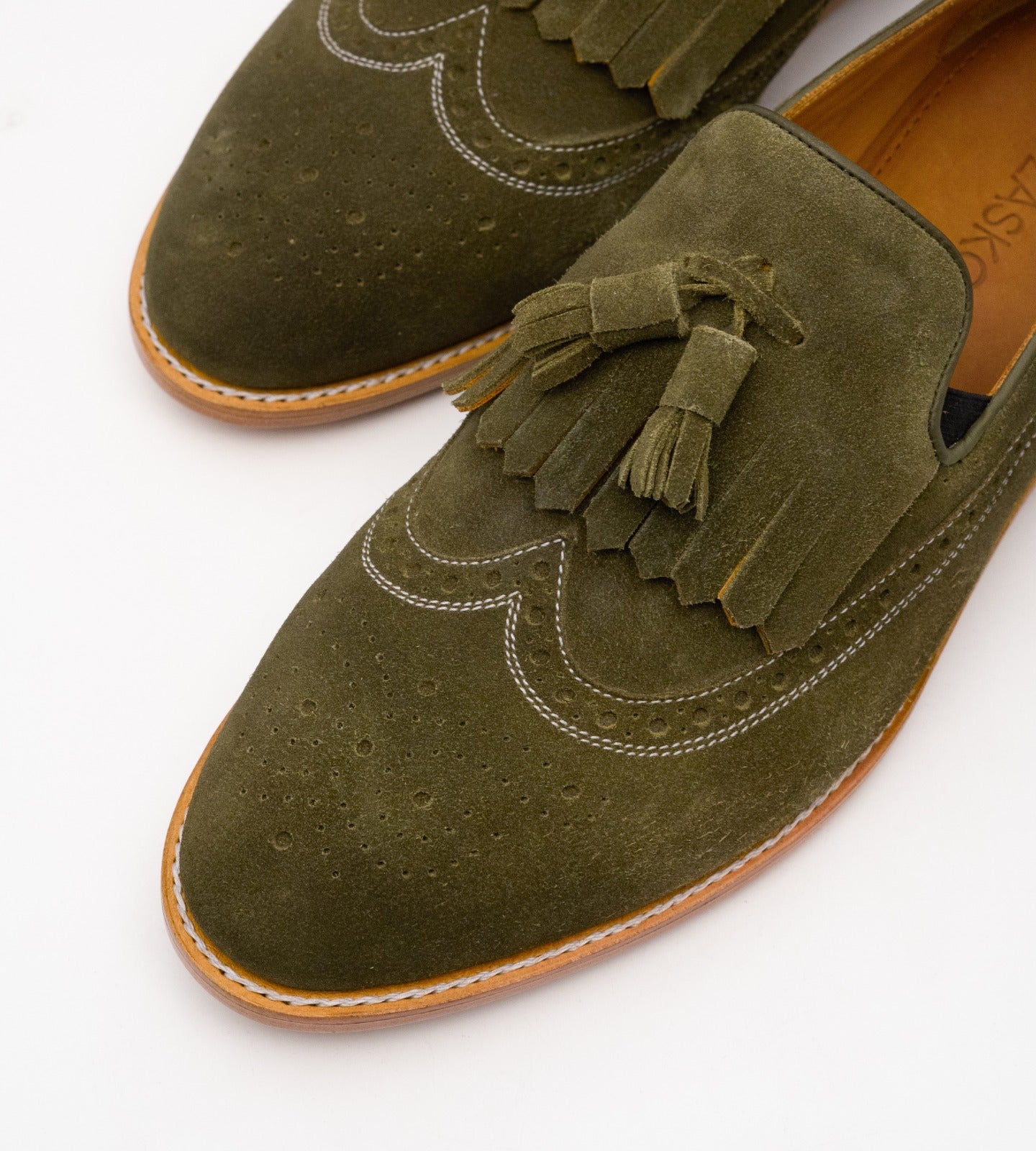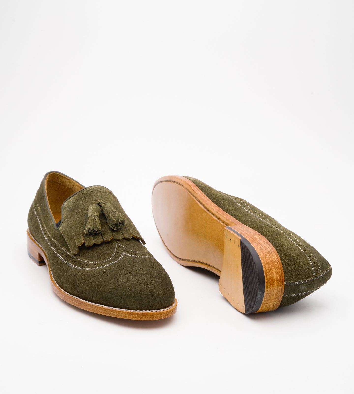 Handwelted Olive Suede Brogue Tassel Loafer